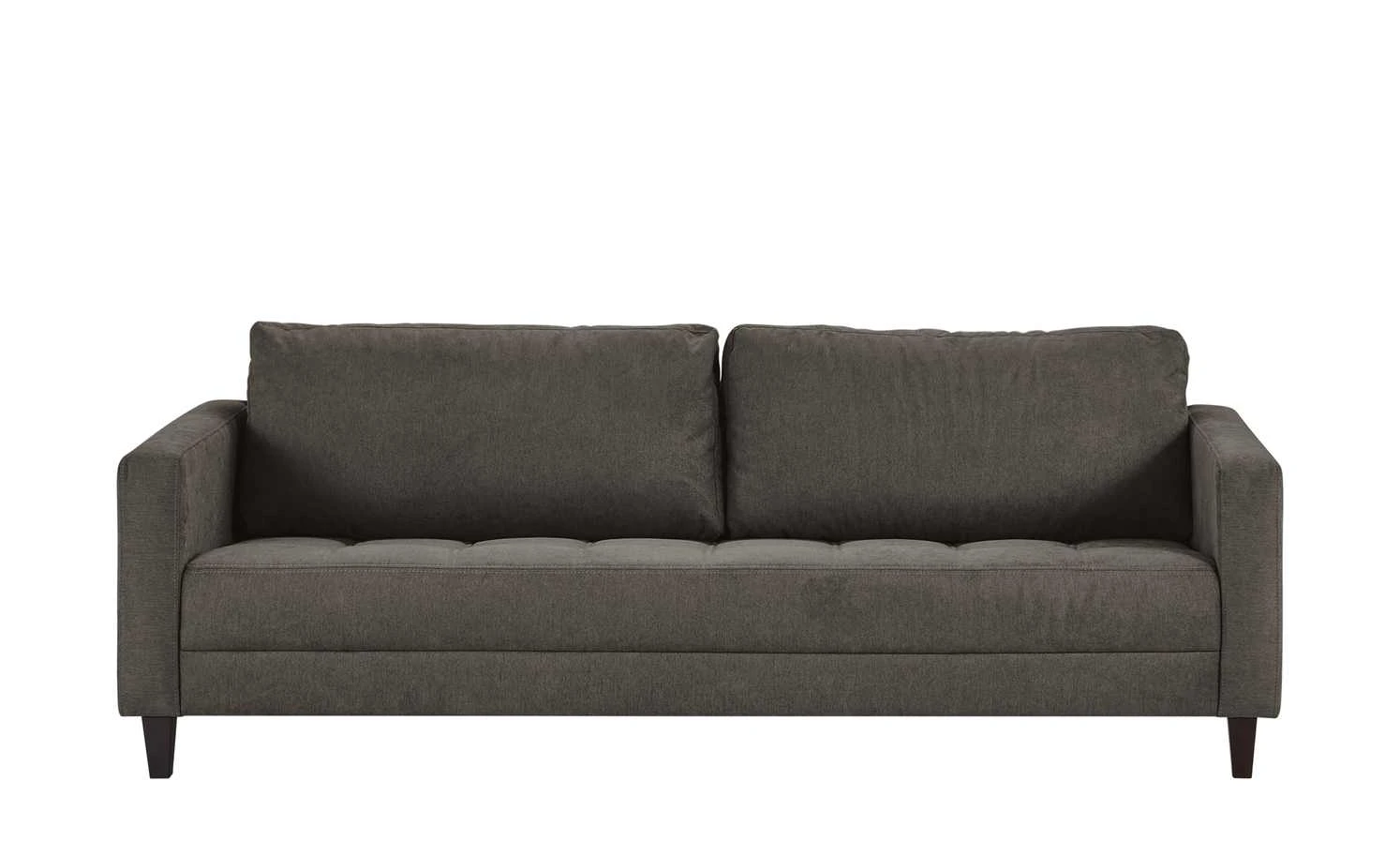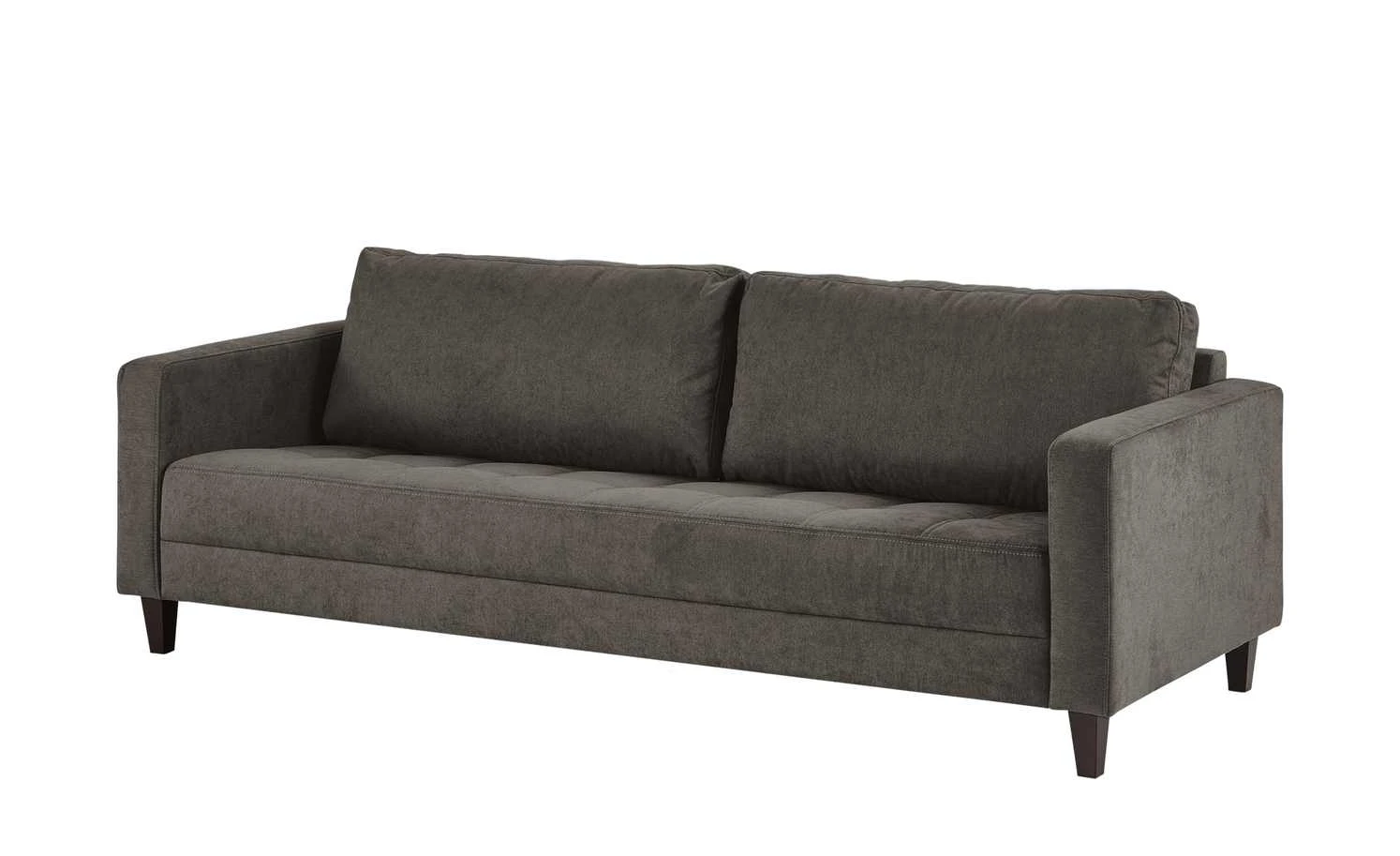 Skandinavische Zurückhaltung mit Retronote – die strahlt das Sofa Geradine von smart aus. Das Design der Couch erinnert ein wenig an den Stil der 60er-Jahre. Die Sitzfläche ist formschön abgesteppt. Spitze Massivholzfüße in dunkler Wengeoptik unterstützen den Retrocharme der Couch. Eine weiche Polsterung und Rückenkissen in angenehmer Höhe sorgen für Sitzkomfort. Geradine ist mit einem soften Flachgewebe bezogen. Der Stoff umspannt auch die gesamte Rückseite des Sofas. Deshalb können Sie Geradine gerne mitten in Ihren Wohnraum stellen.