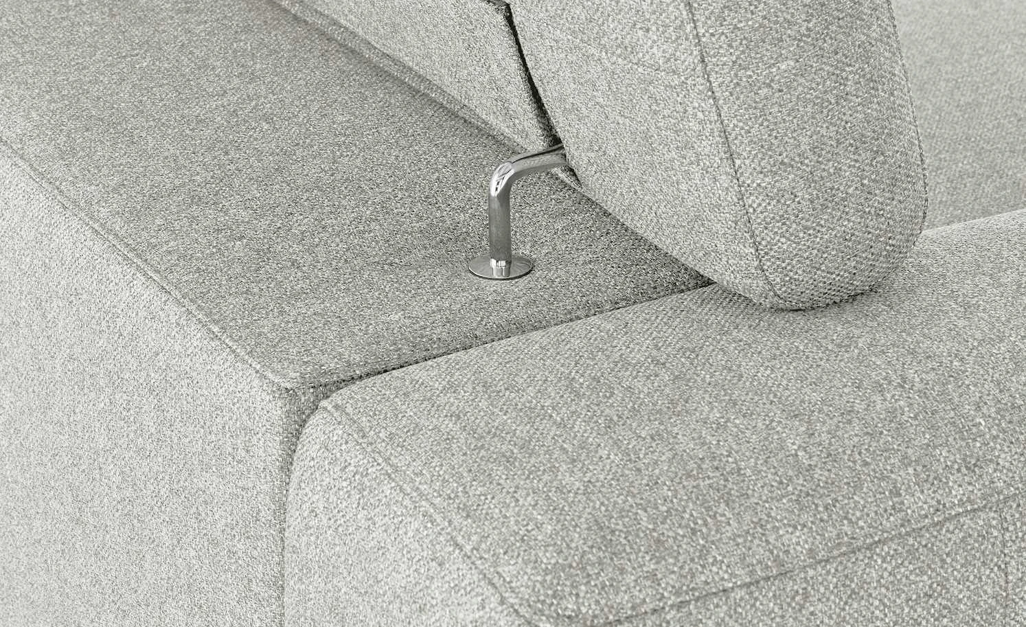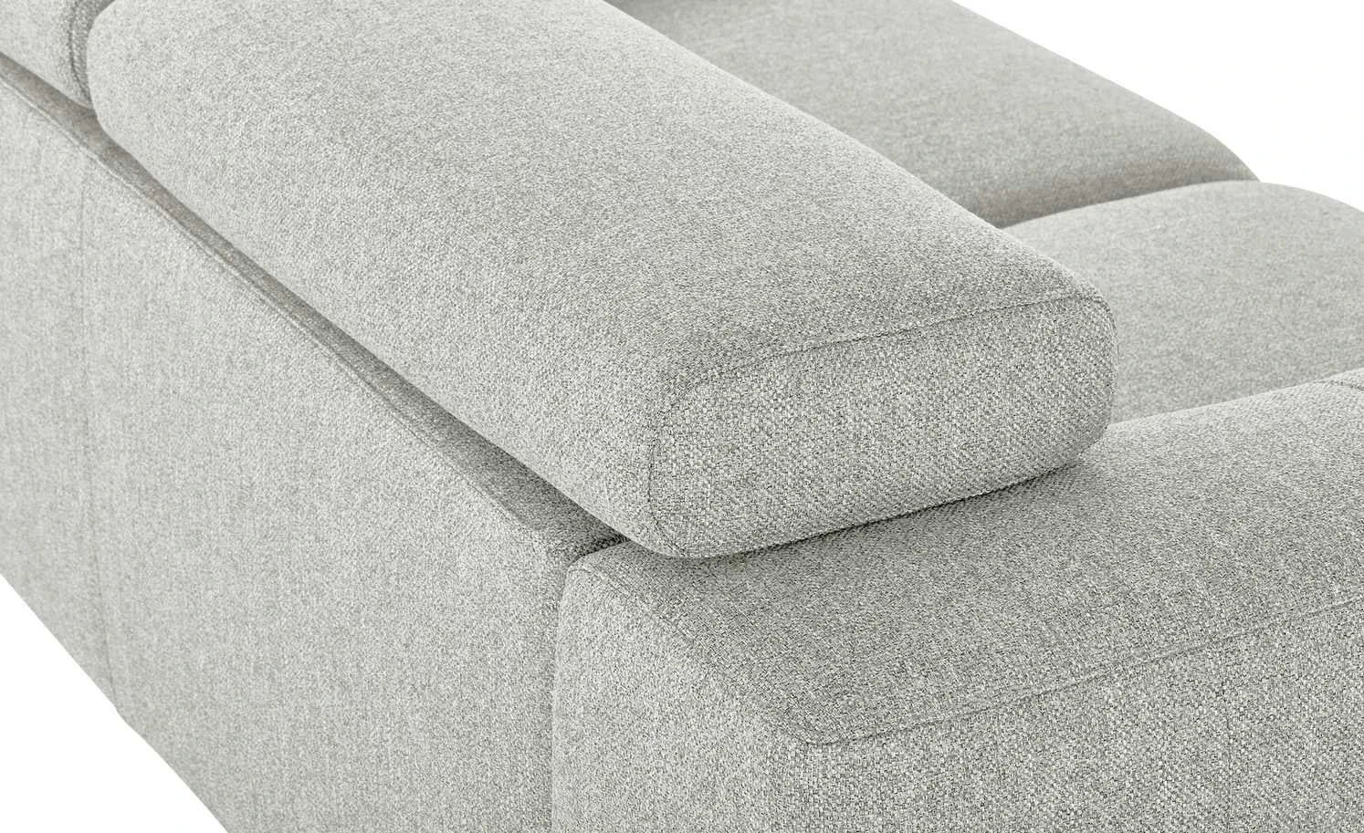 Das Sofa Opera ist ein komfortabler 2,5-Sitzer. Es verfügt über zwei Kopfstützen, die Sie nach Bedarf klappen können. Hochgeklappt sind sie ideal, wenn Sie mal den Kopf anlegen möchten. Auch die Sitztiefe lässt sich variieren. Dazu ziehen Sie den Sitz einfach manuell nach vorne aus. Opera ist weich gepolstert und mit einem melierten Webstoff bezogen. Auch auf der gesamten Rückseite. Dadurch haben Sie die Möglichkeit, die Couch mitten in den Wohnraum zu stellen. So kommt der moderne Gesamtlook des 2,5-Sitzers noch besser zur Geltung.