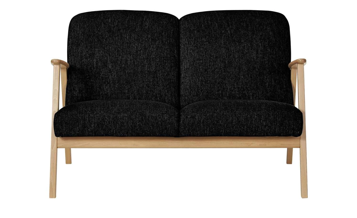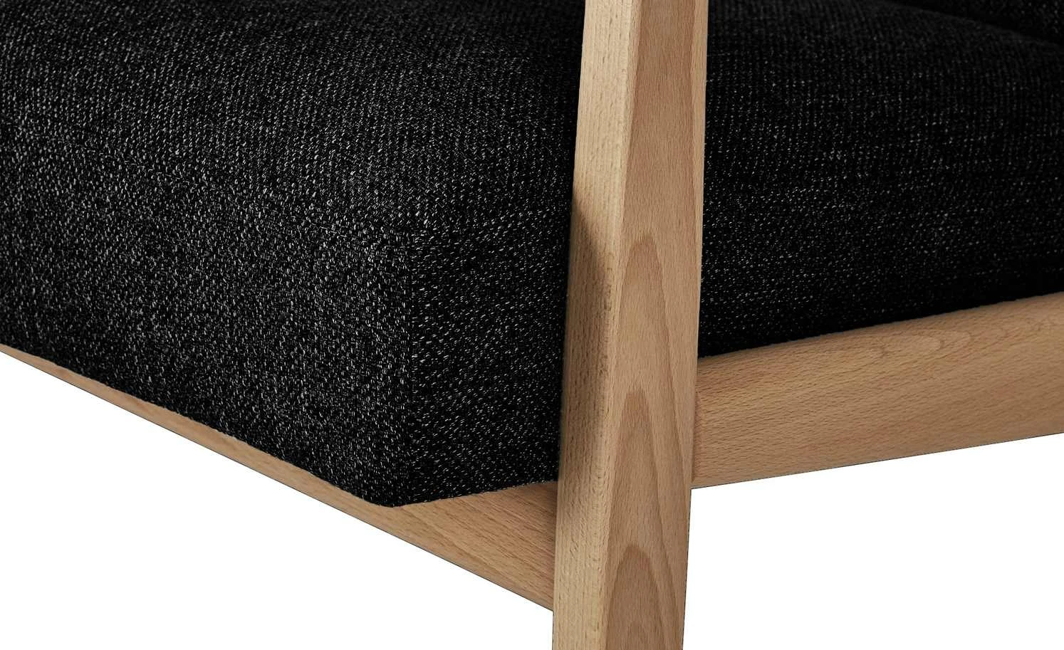 Mit Möbeln im Scandi-Design können Sie sich modern und gleichzeitig gemütlich einrichten. Zum Beispiel mit dem Sofa Rada. Zum stylischen Look gesellt sich ein natürlicher Charme. Er entsteht durch das Gestell aus massiver Buche Natur. Es hat eine helle Farbe und eine feine, holztypische Maserung. Dadurch stellt das Gestell vor allem einen schönen Kontrast zu den Sitzen dar. Sie sind mit einem melierten Flachgewebe in Schwarz bezogen. Darunter befindet sich eine weiche Polsterung, die für Sitzkomfort sorgt.