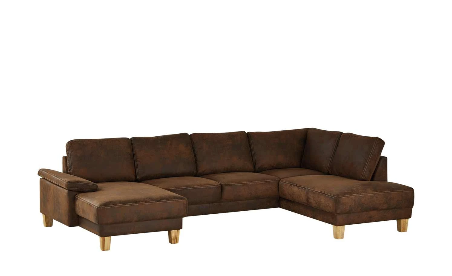 Viel Platz für Familie und Freunde bietet die Wohnlandschaft Atara. Sie ist U-förmig designt und verfügt daher über eine große Sitzfläche. Sie ist – wie auch der Rücken und die Armlehnen – mit Schaumstoff gepolstert. Durch eine zusätzliche Nosag-Wellenunterfederung soll das Durchsitzen verhindert werden. Atara ist mit einer soften Mikrofaser bezogen. Sie fühlt sich nicht nur angenehm an, sondern hat auch eine dekorative Raulederoptik mit angesagten Used-Effekten. Doppelt gearbeitete Kontrastnähte setzen schöne Akzente.