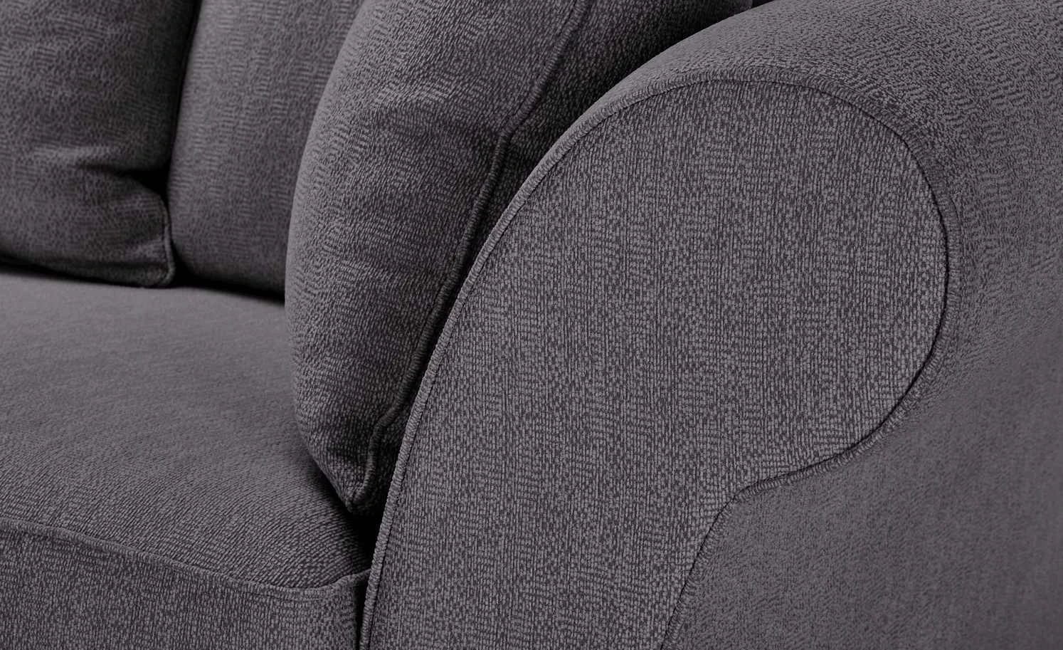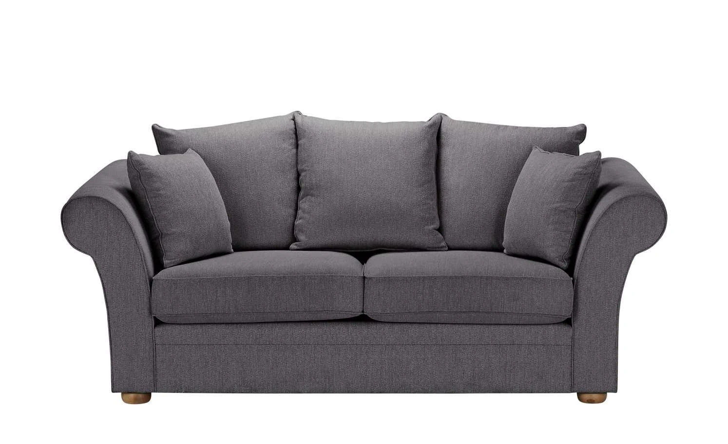 Mit dem Sofa Olivia von SOHO zieht Landhaus-Flair bei Ihnen ein. Es hat ein elegantes, geschwungenes Design in Dunkelgrau. Da auch der Rücken des 2,5-Sitzers mit dem schönen Stoff bezogen ist, können Sie es auch mittig im Raum aufstellen. Die rundlichen Massivholzfüße in Eichenoptik harmonieren angenehm mit dem dunklen Bezug und unterstreichen den Landhaus-Look zusätzlich. Drei große und zwei kleine Kissen sorgen für noch mehr Gemütlichkeit.