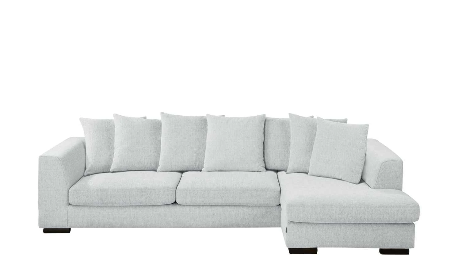 Machen Sie es sich auf dem Ecksofa Paulina bequem. Dank der L-Form können Sie auch gerne die Beine hochlegen. Paulina ist durch die Kaltschaumpolsterung komfortabel. Der softe Webstoffbezug ist leicht meliert. Er umhüllt die Couch auf allen Seiten. Das ermöglicht es Ihnen, Paulina auch mitten im Wohnzimmer zu platzieren. So ergeben sich völlig neue Raumgestaltungsmöglichkeiten. Sieben weiche Rückenkissen sind im Lieferumfang enthalten.