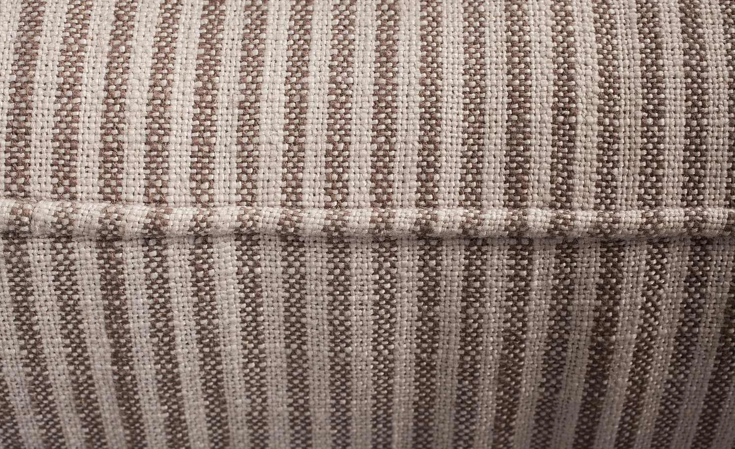 Dieses Loungesofa bezaubert mit seinem hübschen, gestreiften Rundum-Stoffbezug. Das besondere an Franka ist, dass alle tragenden Teile aus Massivholz gefertigt sind. Der sandfarbene Farbton schafft eine gemütliche Atmosphäre und lässt sich gut mit vielen anderen Einrichtungsgegenständen kombinieren. Die walnußfarbigen Holzfüße unterstreichen den natürlichen Charakter des Loungesofas. Die hochwertigen Kaltschaumpolster sorgen für hohen Komfort beim Sitzen. Drei große Rücken- und 2 kleine Dekokissen machen das Sofa besonders wohnlich und gemütlich.