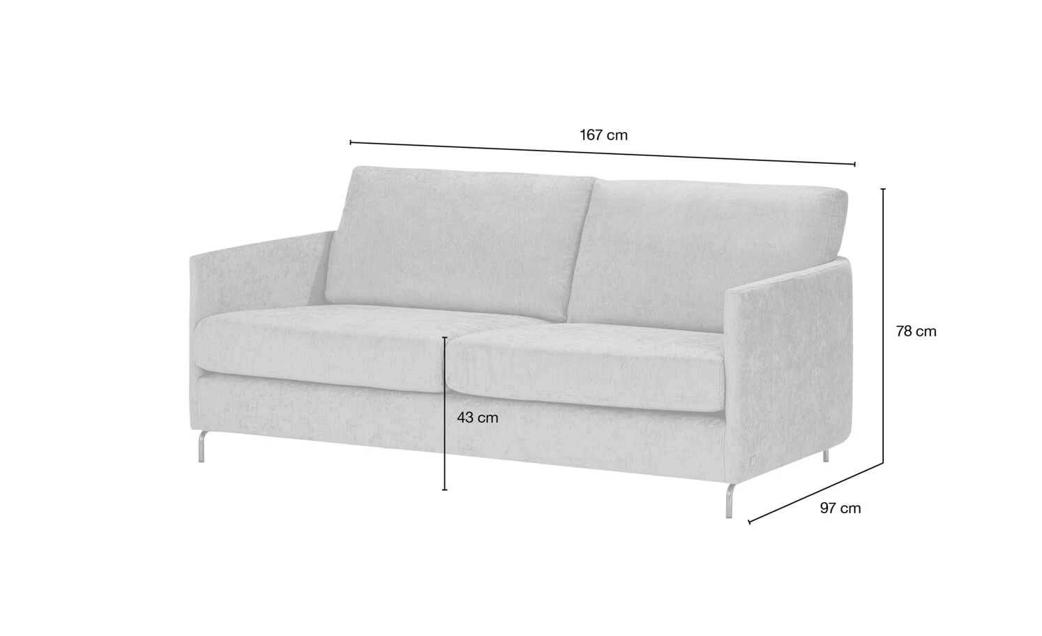 Eine elegante Oase der Gemütlichkeit: Das Sofa Harriet Day. Die Kombination aus dicker Schaumstoffpolsterung und Wellenunterfederung sorgt für einen langanhaltenden, hohen Sitzkomfort. Das Sofa ist mit einem schimmernden Veloursstoff bezogen und besonders weich. Die glänzenden Metallfüße greifen den edlen Look gekonnt auf. Platzieren Sie das Sofa gern auch mittig im Raum: Der weiche Veloursbezug befindet sich nämlich auch am Rücken.