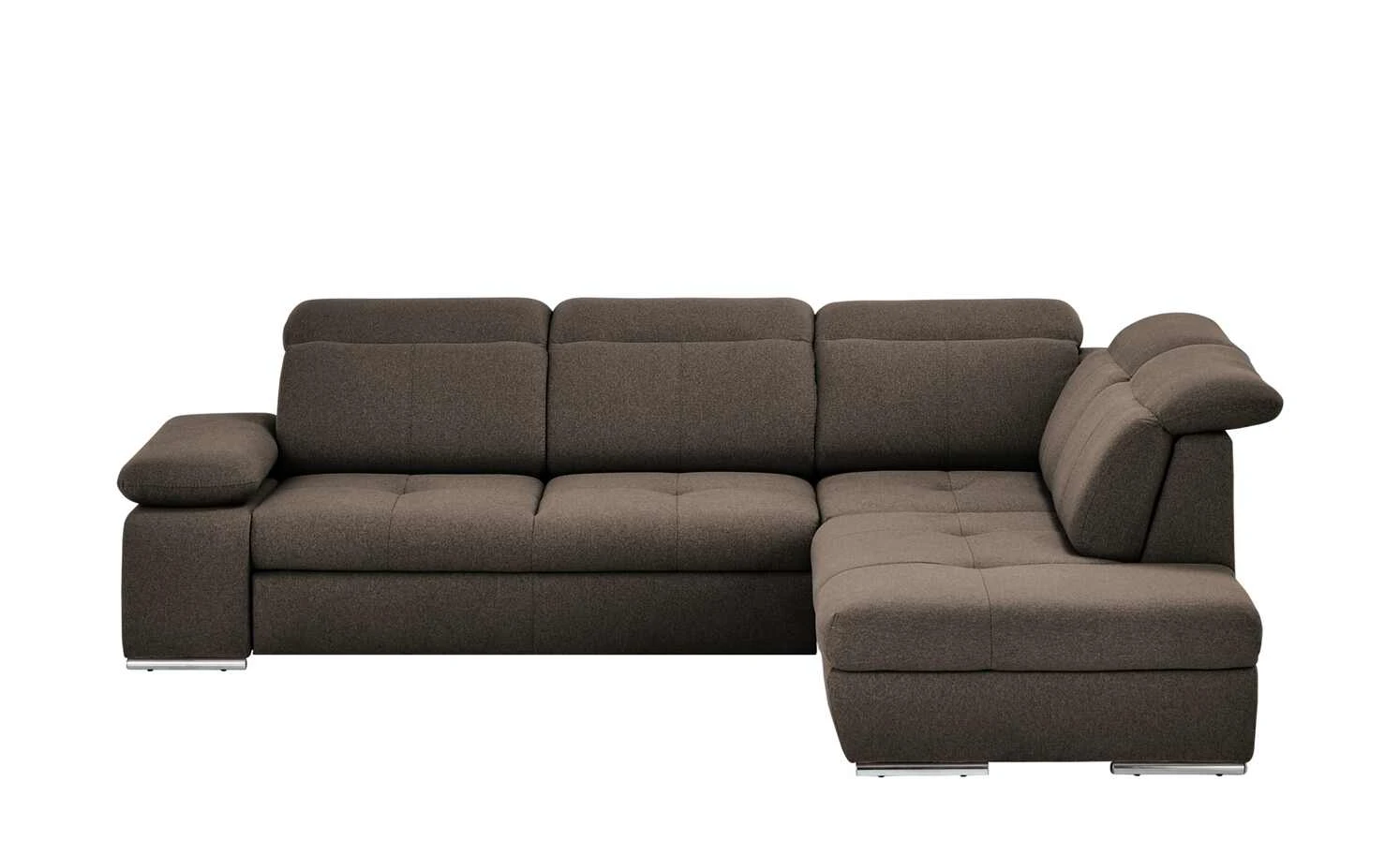 Auf dem Ecksofa Avilla lässt sich der Tag entspannt ausklingen. Dicke Polster und verstellbare Rückenlehnen sorgen für den nötigen Komfort. Auch die Armlehne lässt sich kinderleicht hochklappen. Avilla ist mit einem strapazierfähigen Webstoff bezogen und besitzt chromfarbene Füße, die einen edlen Kontrast setzten. Übrigens: Wenn Sie die erweiterte Funktion wählen, ist Avilla zusätzlich mit einem geräumigen Bettkasten und einer praktischen Schlaffunktion ausgestattet.