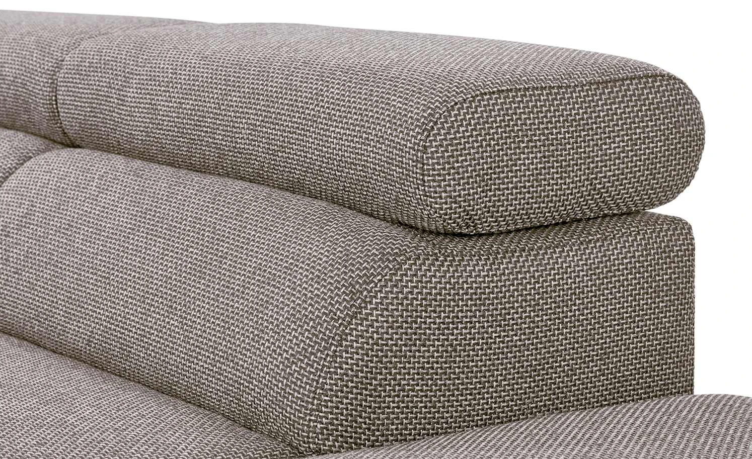 Genießen Sie den Fernsehabend auf dem Ecksofa Lavos. Die Couch ist angenehm weich gepolstert und mit einer Wellenunterfederung ausgestattet. Durch die L-Form bietet sie viel Platz – auch zum Hochlegen der Beine. Die Kopfpolster können Sie für mehr Komfort verstellen. So sitzt es sich gleich noch bequemer. Der melierte Bezug in Beige umhüllt die Couch komplett. Stellen Sie Lavos doch mittig in Ihr Wohnzimmer.