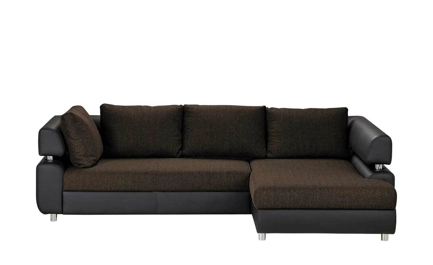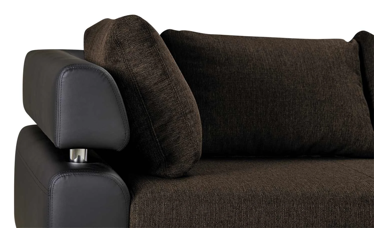 Dieses komfortable Ecksofa besticht durch seine elegante Optik und seine cleveren Funktionen. Die Kombination aus Kunstlederbezug und Webstoff zaubert eine moderne kontrastreiche Optik. Auch am Rücken ist Panama mit Kunstleder bezogen und kann daher frei im Raum platziert werden. Das schicke Ecksofa verfügt über eine integrierte Schlaffunktion und einen Bettkasten. So kann es als bequemes Gästebett genutzt werden. Der eingearbeitete Federkern auf Schaumstoff sorgt für einen angenehmen Sitzkomfort. 4 Kissen machen das Sofa noch bequemer. So steht einem gemütlichen Abend nichts mehr im Weg.