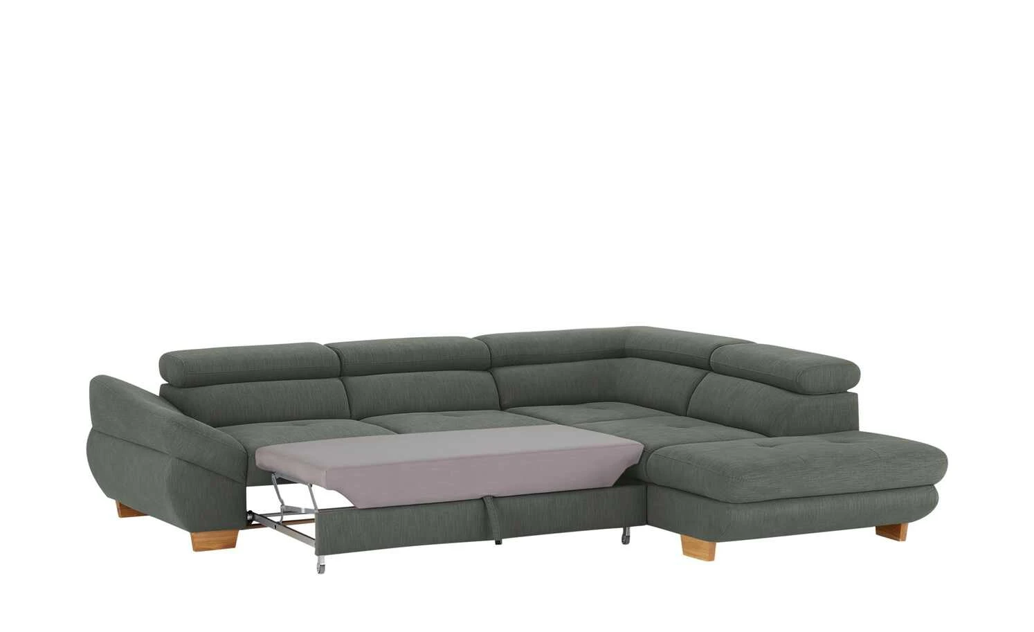 Das Ecksofa Fabio verschafft Ihnen zusätzliche Bequemlichkeit. Das Sofa macht in seinem natürlichen, klassischen Design eine hervorragende Figur. In gewohnter Qualität der Marke Switch Refresh begeistert es mit geschmackvoller Gestaltung und einem einzigartigen Sitzerlebnis. Das Modell Fabio lässt in Sachen Komfort mit einer Kopfteilverstellung keine Wünsche offen, kann dank des echt bezogenen Rückens frei im Raum aufgestellt werden und verfügt über Wellenfederkerne sowie eine bequeme Polsterung aus Schaumstoff für das maximale Wohlfühlerlebnis. Die mit Flachgewebe bezogene Sitz- und Rückenfläche rundet den Gesamteindruck ideal ab. Das Sofa steht sicher auf ästhetischen Füßen aus Massivholz. Es hat eine Ottomane auf der rechten Seite, wird dank der Bettfunktion zu einem komfortablen Schlafsofa und dient mit einem praktischen Bettkasten als Stauraummöbel. Das Modell Fabio verfügt über eine Sitzhöhe von 40 cm, wird durch die Sitztiefe von 62 cm zu einer wahren Oase der Entspannung und nimmt insgesamt 69 cm ein. Dieses Sofa bietet jedem Zuhause zusätzlichen Komfort.