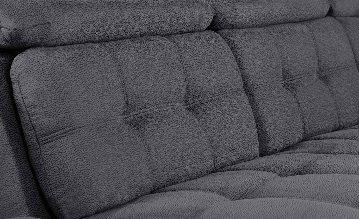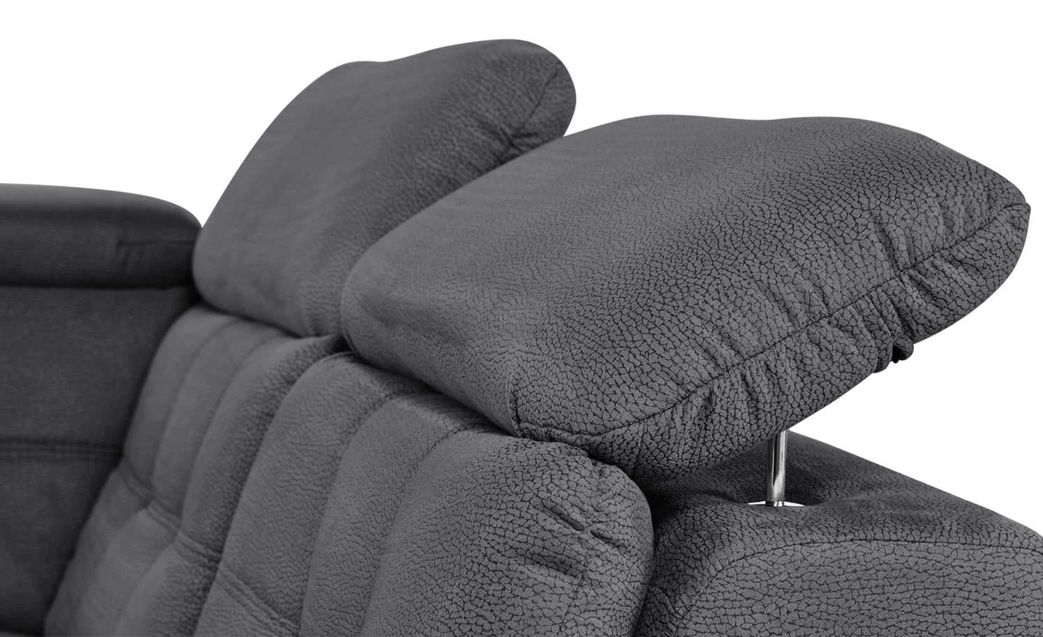 Komfort oder Design? Mit dem Ecksofa Elias II brauchen Sie sich nicht entscheiden. Die Couch ist komfortabel gepolstert. Im Sitzbereich befindet sich außerdem eine langlebige Nosag-Wellenunterfederung. Alle fünf Kopfpolster sind individuell verstellbar. So können Sie beim Entspannen den Kopf anlegen. Auch die Armlehne lässt sich nach Bedarf hoch- und runterklappen. Da das Sofa komplett mit einer soften Mikrofaser bezogen ist, können Sie es flexibel in Ihren Wohnraum stellen.
