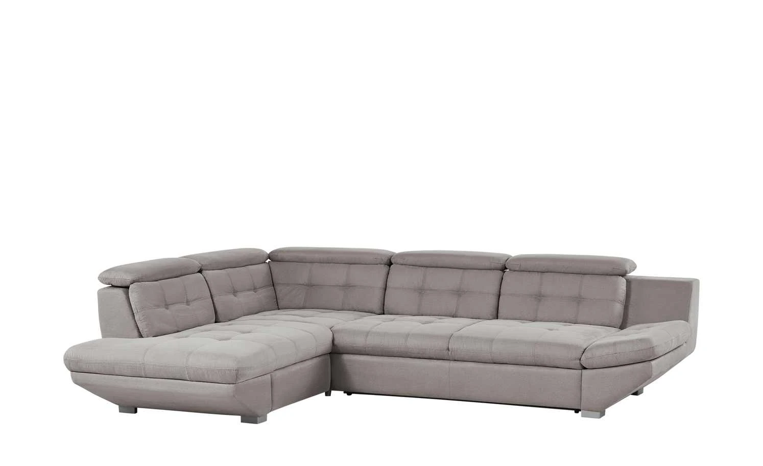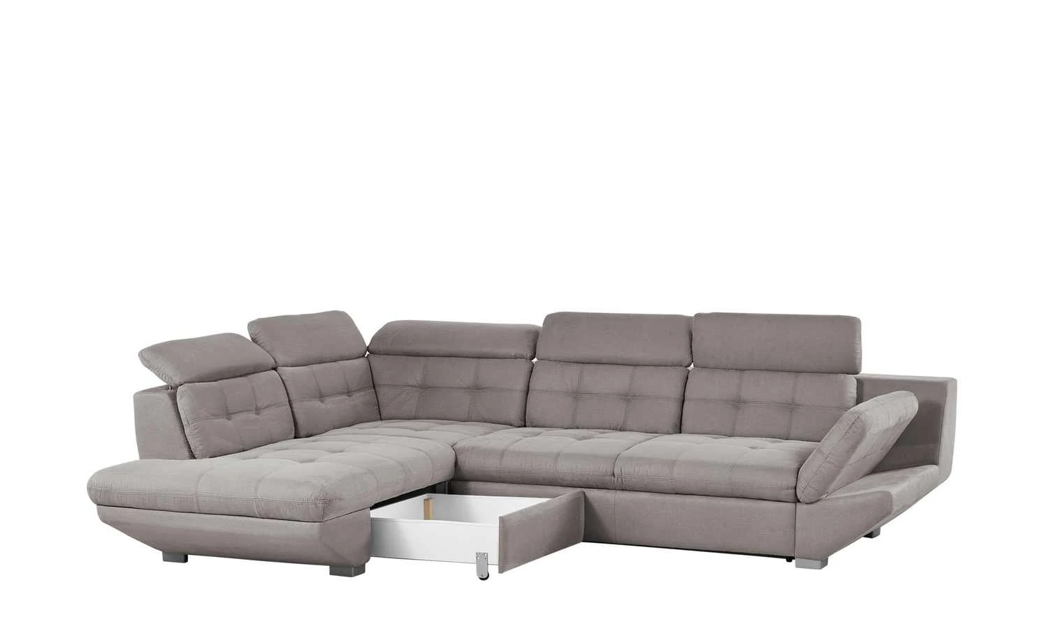 Komfort oder Design? Mit dem Ecksofa Elias II brauchen Sie sich nicht entscheiden. Die Couch ist komfortabel gepolstert. Im Sitzbereich befindet sich außerdem eine langlebige Nosag-Wellenunterfederung. Alle fünf Kopfpolster sind individuell verstellbar. So können Sie beim Entspannen den Kopf anlegen. Auch die Armlehne lässt sich nach Bedarf hoch- und runterklappen. Gäste finden auf dem Sofa einen bequemen Schlafplatz. Dank der Schlaffunktion wird Elias II im Handumdrehen zum Gästebett ausgeklappt. Ein zusätzliches Highlight ist der ausziehbare Stauraum. Da das Sofa komplett mit einer soften Mikrofaser bezogen ist, können Sie es flexibel in Ihren Wohnraum stellen.