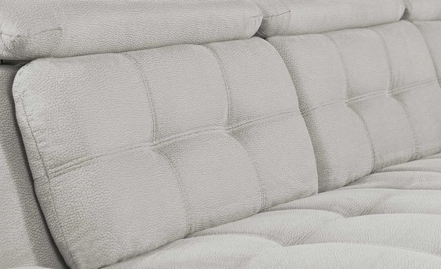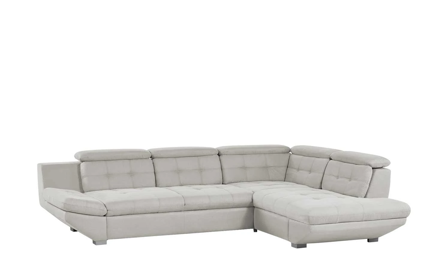 Komfort oder Design? Mit dem Ecksofa Elias II brauchen Sie sich nicht entscheiden. Die Couch ist komfortabel gepolstert. Im Sitzbereich befindet sich außerdem eine langlebige Nosag-Wellenunterfederung. Alle fünf Kopfpolster sind individuell verstellbar. So können Sie beim Entspannen den Kopf anlegen. Auch die Armlehne lässt sich nach Bedarf hoch- und runterklappen. Da das Sofa komplett mit einer soften Mikrofaser bezogen ist, können Sie es flexibel in Ihren Wohnraum stellen.
