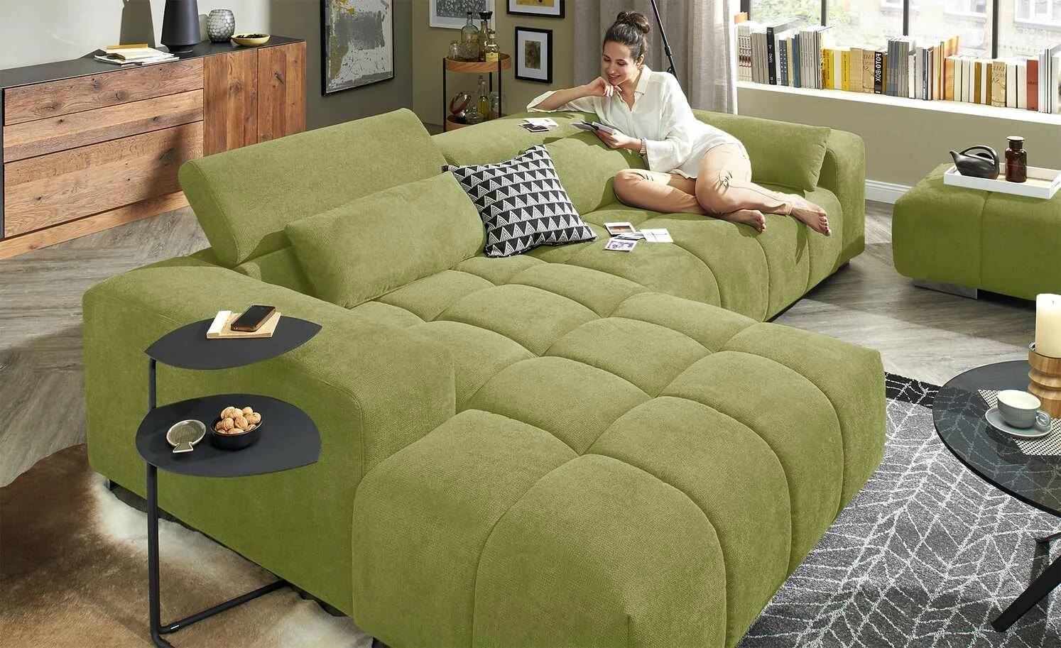 Zwischen modernem Design und Sitzkomfort sollte man sich nicht entscheiden müssen. Das Ecksofa Origo hat beides. Die langlebige Nosag-Wellenunterfederung wird durch eine bequeme Schaumstoffpolsterung ergänzt. So dass Sie so richtig komfortabel sitzen können. Die beiden Kopfteile können Sie nach Bedarf verstellen. Die Récamiere bietet Ihnen die Möglichkeit, die Beine beim Entspannen hochzulegen. Also, Beine hoch und den Kopf anlegen – und ruhen Sie sich aus. Origo ist mit einer weichen, hochwertigen Mikrofaser bezogen. Sie umspannt auch die Couch-Rückseite. Sie sieht dadurch genauso attraktiv aus, wie die Vorderseite des Sofas. Deshalb können Sie Origo auch zentral in den Wohnraum stellen.