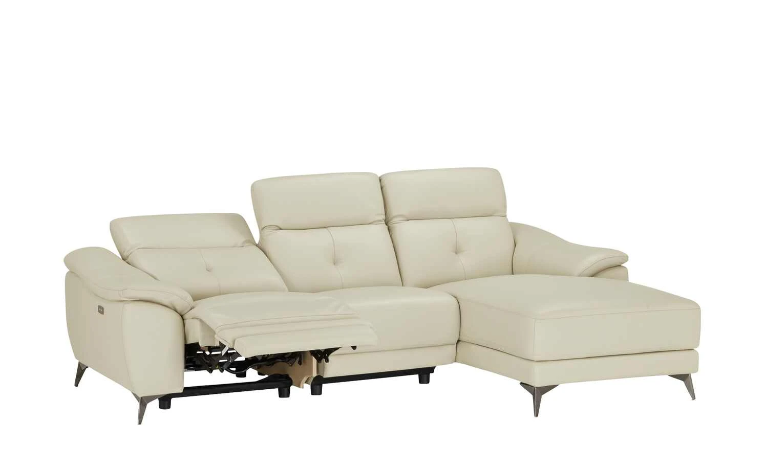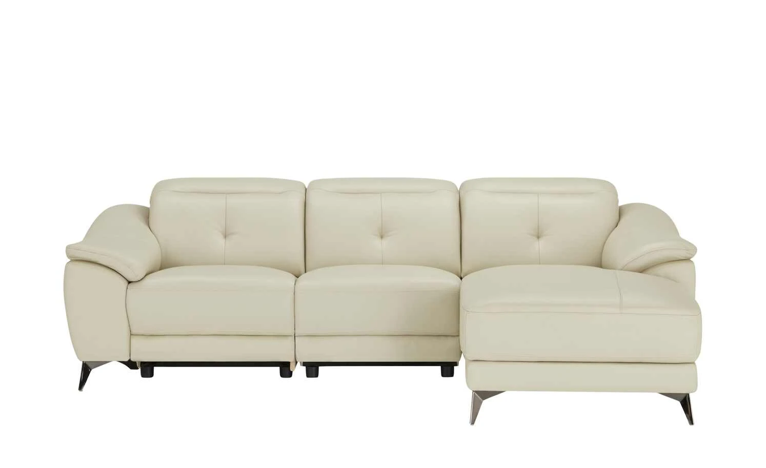 Das Ecksofa Eva ist ein wahres Highlight und überzeugt zudem mit einem außergewöhnlichen Gemütlichkeitsfaktor. Dank der automatischen Relaxfunktion ist dieses Marken-Sofa von uno extrem gemütlich. Es ergänzt Ihr persönliches Wohlfühlkonzept dank seines klassischen Stils. Der Korpus des Sofas besticht durch einen attraktiven Überzug aus geschmackvollem Lederimitat und erzeugt damit ein ansprechendes Erscheinungsbild. Dank des echt bezogenen Rückens kann das Modell Eva frei im Raum platziert werden. Der Bezug der Sitz- und Rückenfläche aus Leder rundet die Optik gekonnt ab. Das Sofa ist mit einer bequemen Nosagfederung, Wellenfederkernen sowie einer Polsterung aus Schaumstoff versehen und bringt eine Ottomane auf der rechten Seite mit. Es lädt mit der Sitztiefe von 55 cm zum Relaxen ein, weist eine Sitzhöhe von 45 cm auf und nimmt insgesamt 78 × 255 cm ein. Dieses Sofa verschafft auch Ihrem Zuhause einen außergewöhnlichen Wohlfühlfaktor.