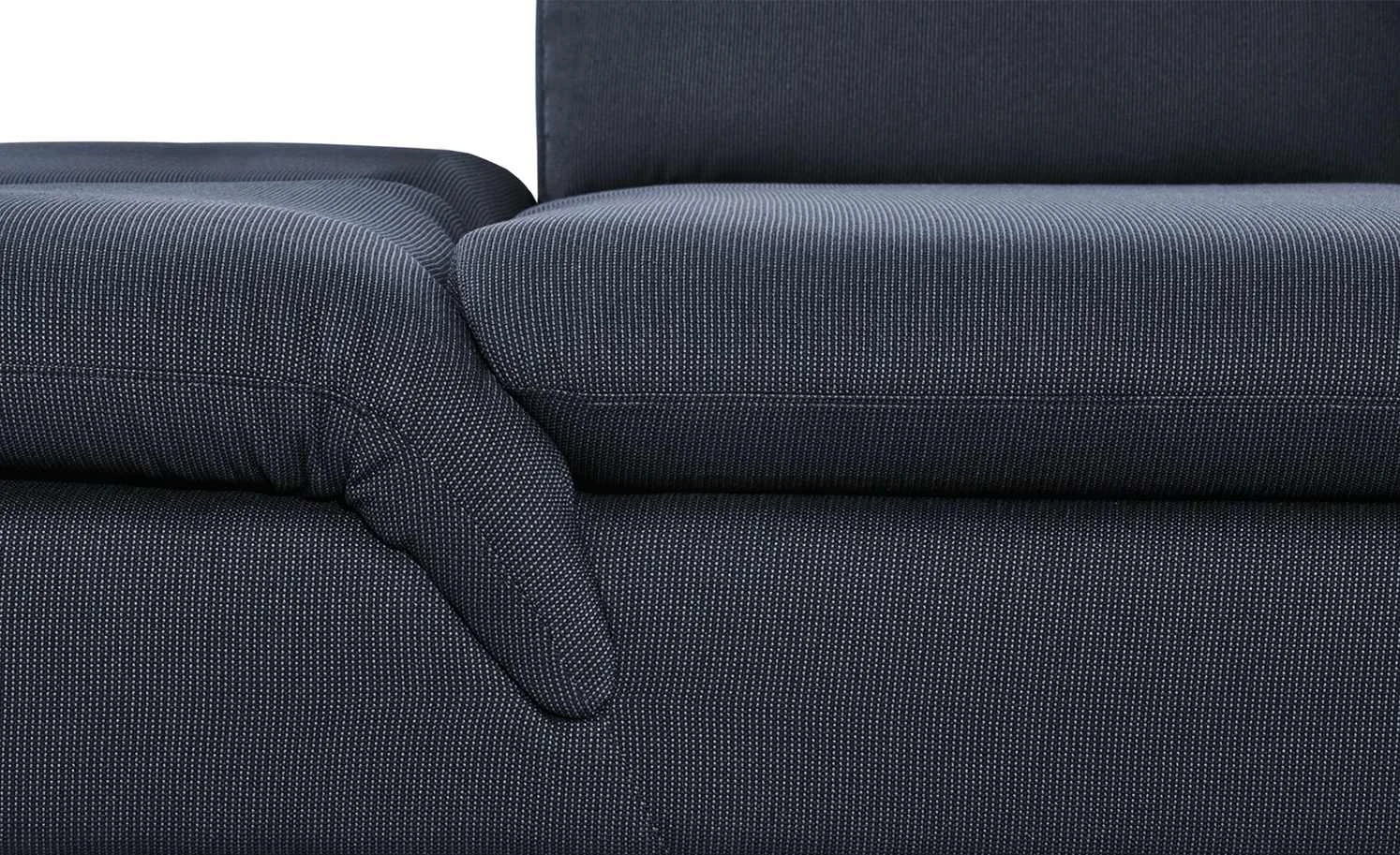 Stylisches Design und Komfort machen das Ecksofa Saraa zum Highlight Ihres Wohnraumes. Die Couch ist mit PUR Schaum und einem Federkern gepolstert. Der Sitzbereich ist außerdem mit einer Wellenunterfederung ausgestattet. Die Sitztiefe von zwei Sitzen können Sie manuell regulieren. Und es sich so noch gemütlicher machen. Saraa ist mit einem attraktiv strukturierten Webstoff in Blau bezogen. Der Webstoff umhüllt auch die Rückseite der Couch. Stellen Sie Saraa gerne auch mittig in das Zimmer – nicht nur vor eine Wand.