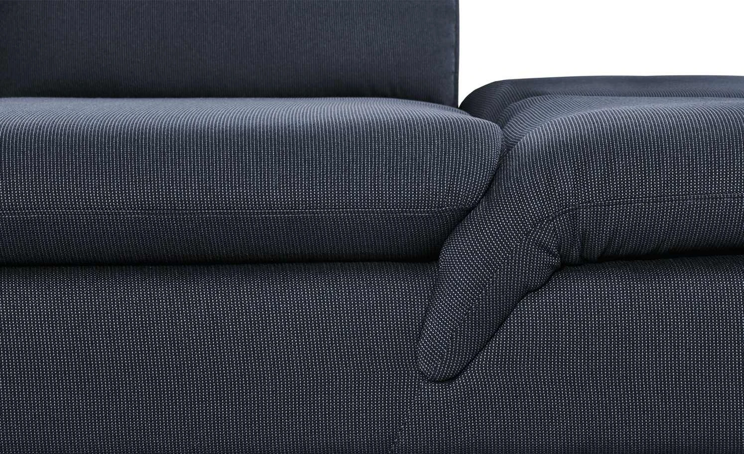 Stylisches Design und Komfort machen das Ecksofa Saraa zum Highlight Ihres Wohnraumes. Die Couch ist mit PUR Schaum und einem Federkern gepolstert. Der Sitzbereich ist außerdem mit einer Wellenunterfederung ausgestattet. Die Sitztiefe von zwei Sitzen können Sie manuell regulieren. Und es sich so noch gemütlicher machen. Saraa ist mit einem attraktiv strukturierten Webstoff in Blau bezogen. Der Webstoff umhüllt auch die Rückseite der Couch. Stellen Sie Saraa gerne auch mittig in das Zimmer – nicht nur vor eine Wand.