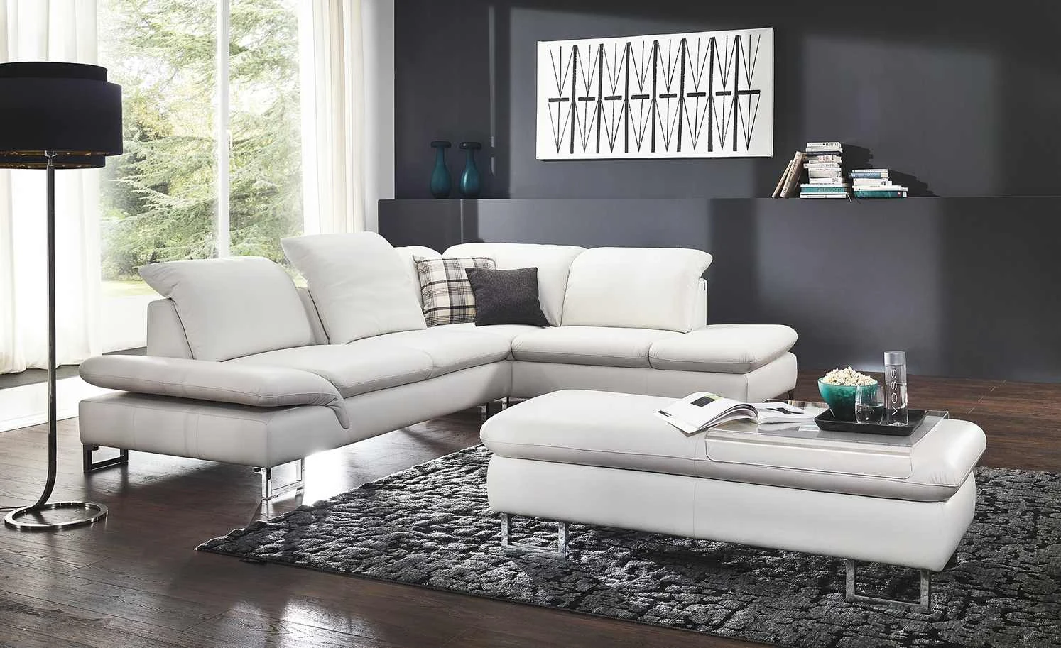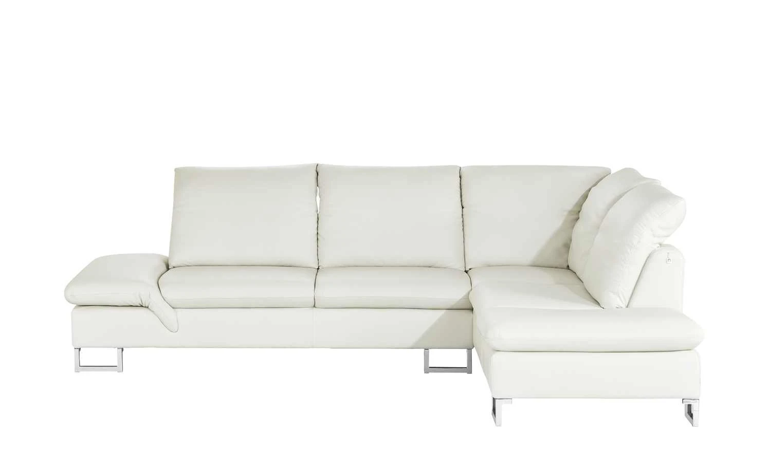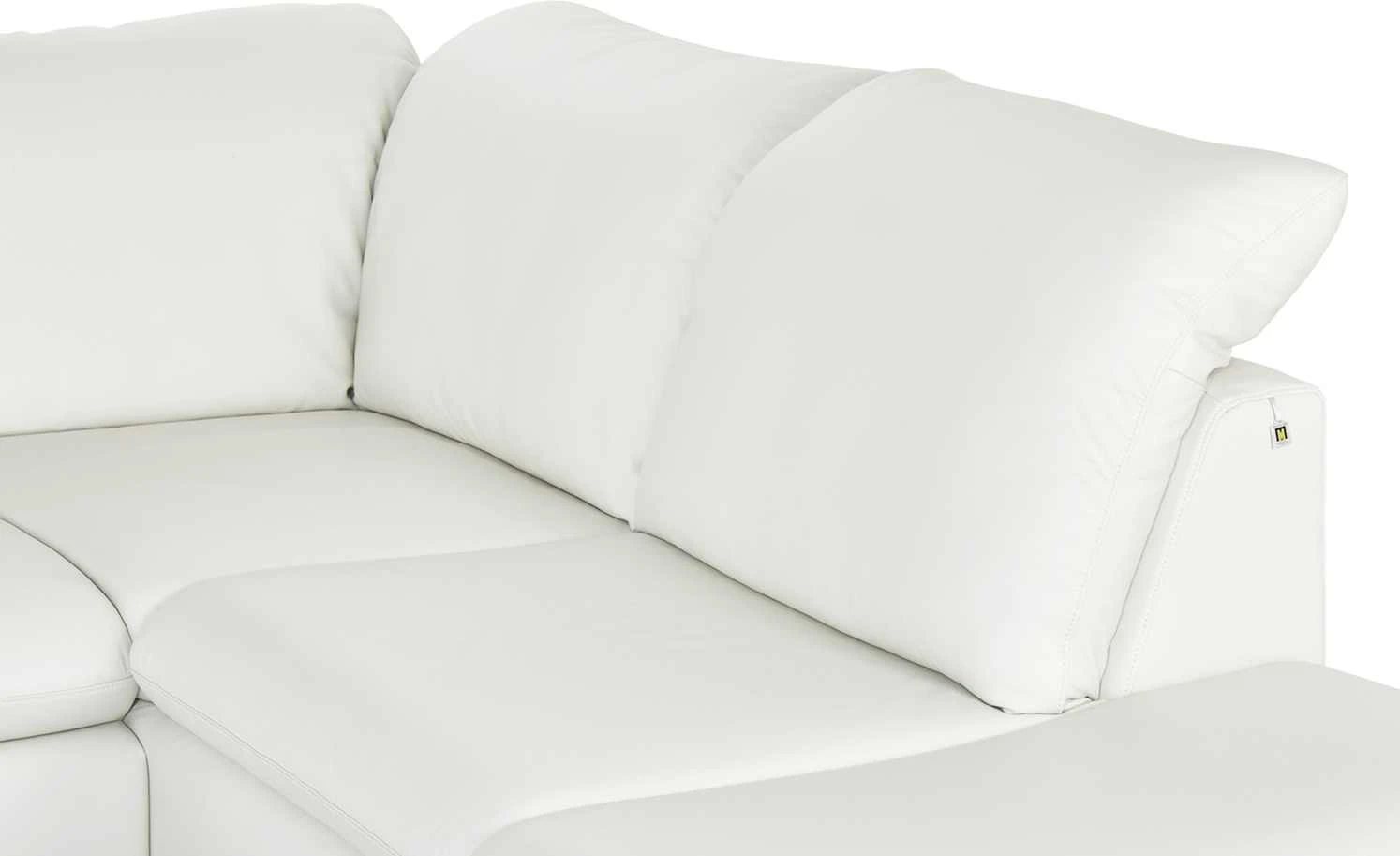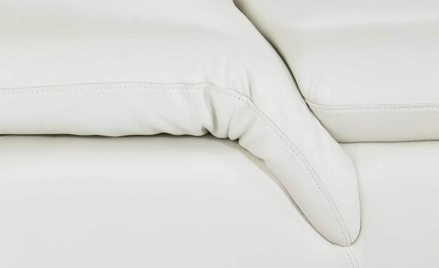 Saraa ist ein stylisches Ledersofa in elegantem Creme. Dank seiner Form bietet Saraa viel Platz – auch zum Hochlegen der Beine. Die Rückseite des Sofas ist echt, also auch mit Leder bezogen. Darum können Sie die Couch frei im Raum platzieren. Saraa verfügt über eine Polsterung mit PUR Schaum und einen Federkern. Im Sitzbereich kommt eine Wellenunterfederung hinzu. Für mehr Komfort können Sie die Sitztiefe manuell verstellen. Auch die Armlehnen und die Kopfteile können Sie variieren – und es sich noch bequemer machen.