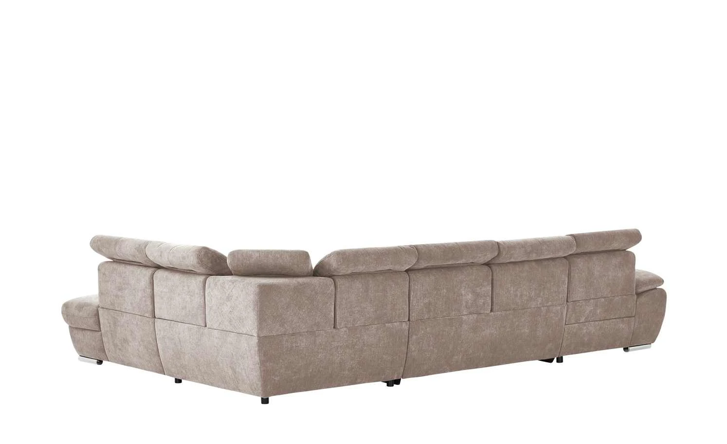 Das gesamte Sofa ist mit einem strapazierfähigen Mikrofaserstoff bezogen und kann problemlos frei im Raum stehen. Die Wohnlandschaft Gladys gibt es in vielen verschiedenen Farbvarianten und passt dadurch in nahezu jedes Raumkonzept.