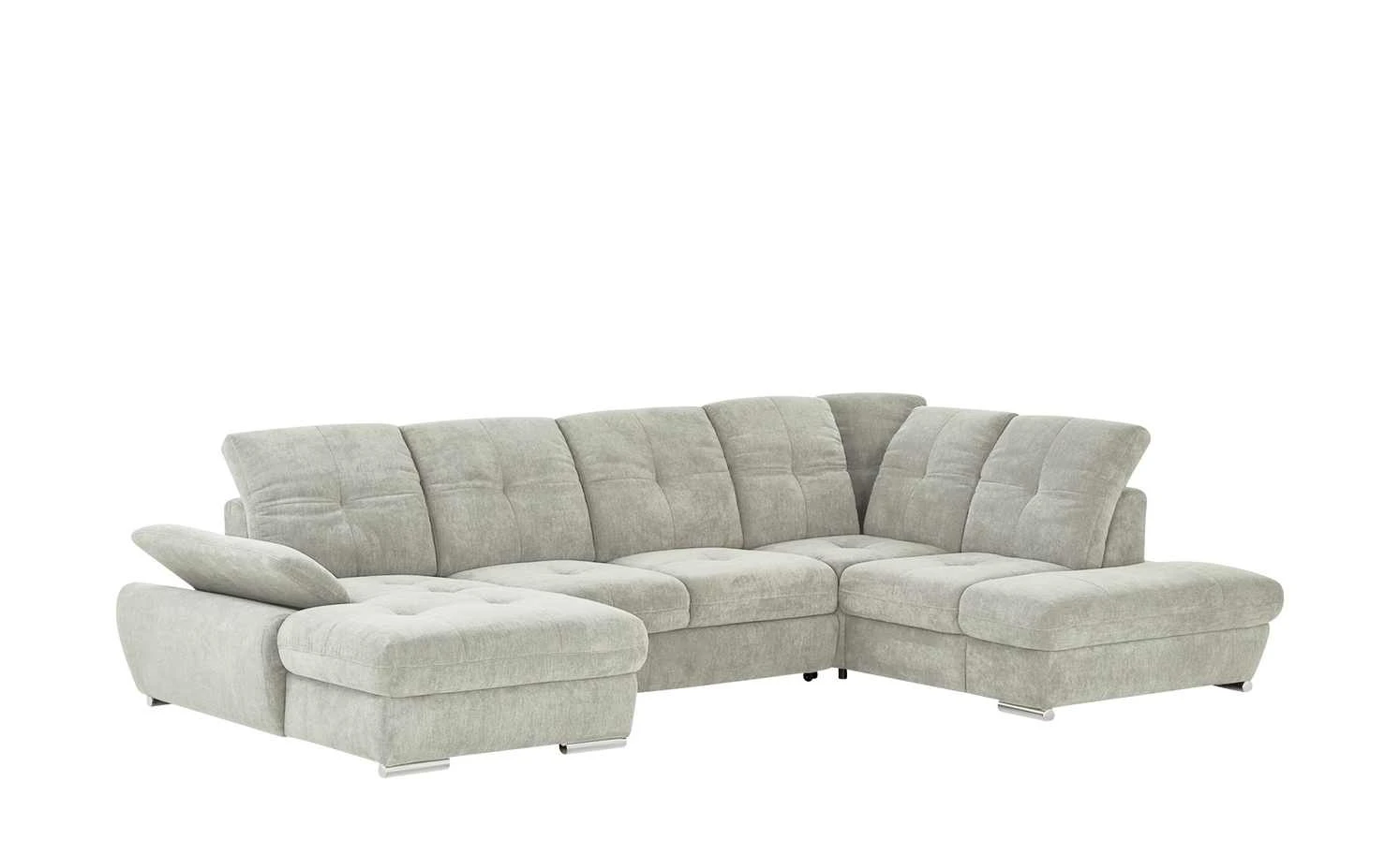 Viel Platz für Ihre Familie und Freunde bietet die Wohnlandschaft Gladys. Die Nosag-Wellenunterfederung und die formstabilen Schaumstoffpolster sorgen für langanhaltenden Sitzkomfort. Die sieben Kopfteile lassen sich einfach verstellen und ermöglichen ein entspanntes Zurücklehnen nach einem langen Tag. Auch die Sitztiefe der einzelnen Sitze und die Armlehne der Récamiere können Sie manuell Ihren Bedürfnissen anpassen. Die Wohnlandschaft besitzt eine Schlaffunktion: So können Sie bis zu zwei Gäste übernachten lassen. Bettzeug und Decken können Sie im aufklappbaren Bettkasten der Récamiere verstauen.